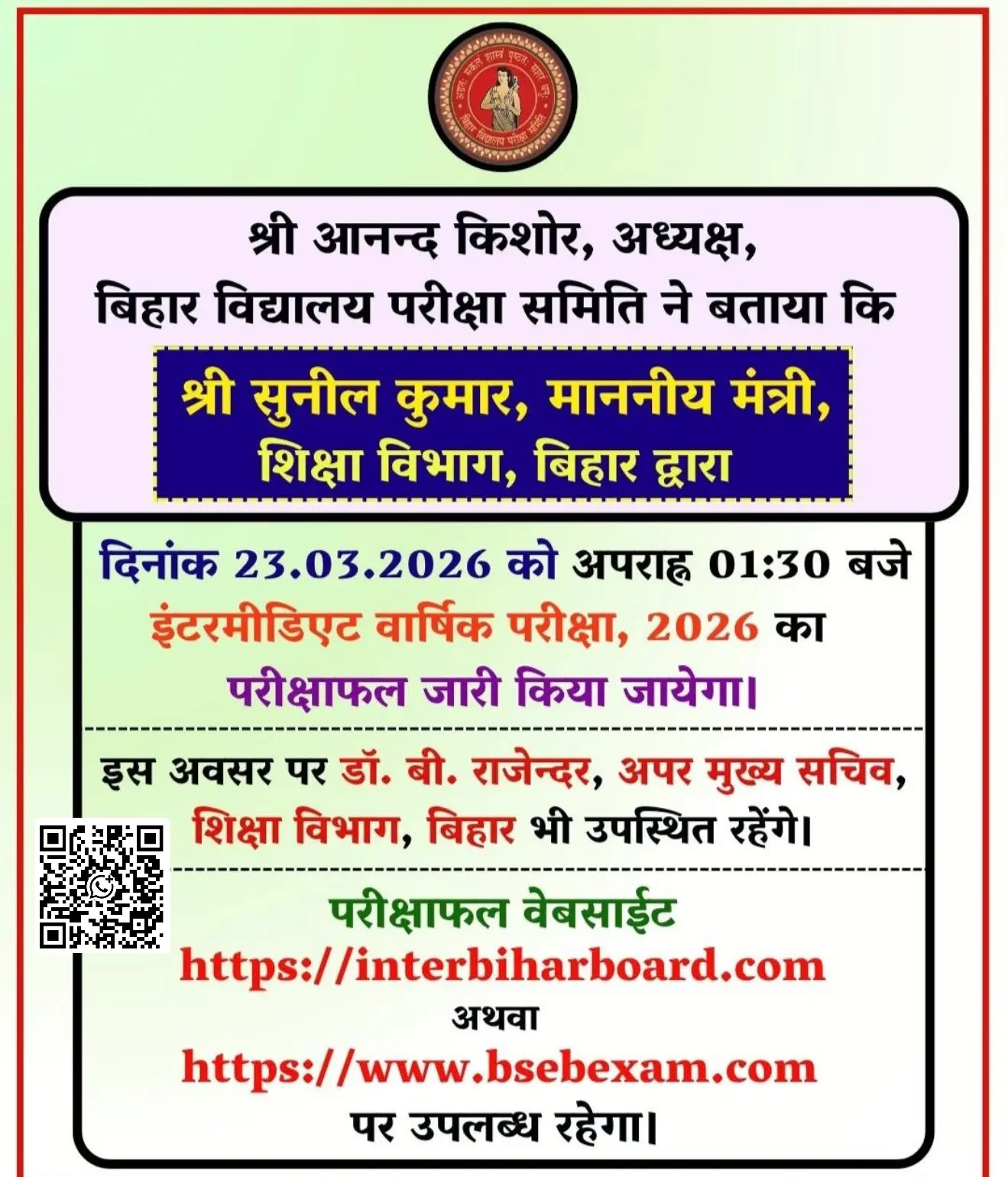 - Class 12th Exam Result Date : 23/03/2026 At 01:30 PM